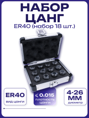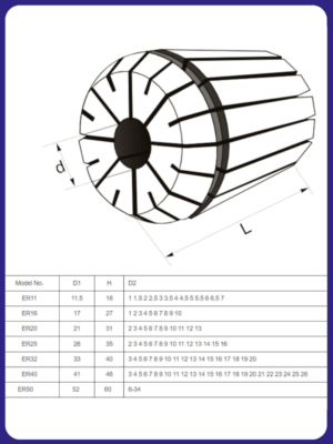 Цанга зажимная прецизионная ER для фрезерных, сверлильных, расточных станков, в том числе с ЧПУ, токарных станков. Для зажима фрез, сверл, разверток с цилиндрическим хвостовиком. Сквозное отверстие, две зоны зажима.