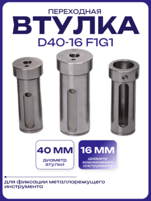Использование переходной втулки необходимо для прочной фиксации инструмента на станке. Он гарантирует высокую точность центрирования, при проведении работ по металлу, снижает риски сбоев в работе и повреждения станка. Втулка переходная D20-10 F1G1 практически полностью исключает ударный резонанс на высокой скорости.