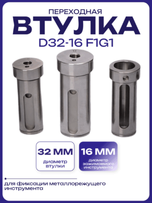 Использование переходной втулки необходимо для прочной фиксации инструмента на станке. Переходная втулка D32-12 F1G1 гарантирует высокую точность центрирования, при проведении работ по металлу, снижает риски сбоев в работе и повреждения станка. Практически полностью исключает ударный резонанс на высокой скорости.